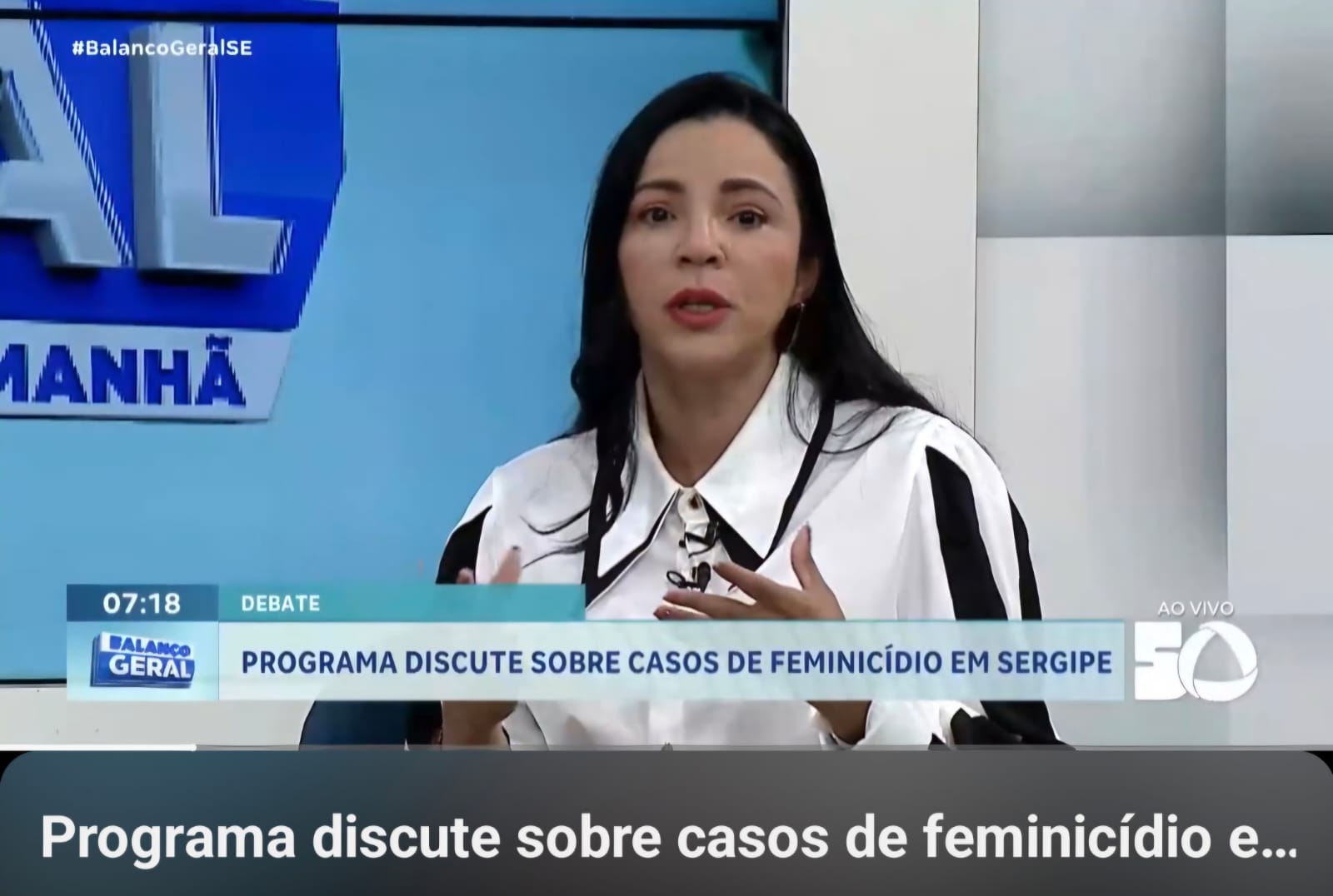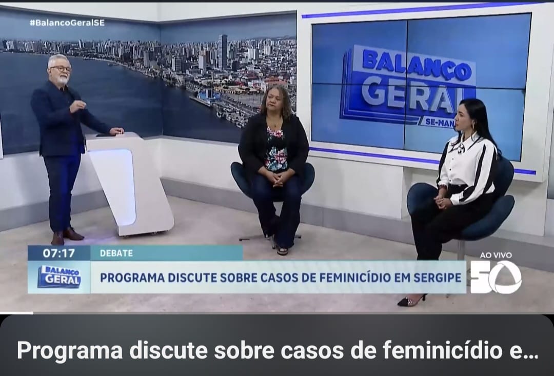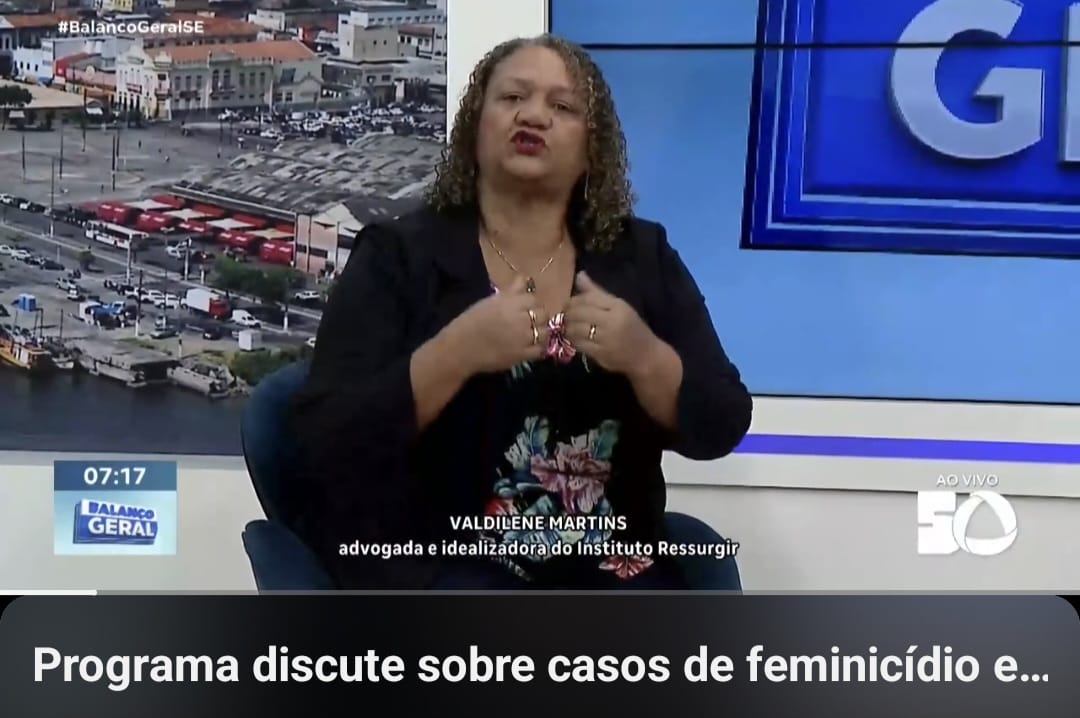 Na manhã de 22.12.2025, o Instituto RESSURGIR Sergipe, representado pela presidente, Valdilene Oliveira Martins, participou de um debate, juntamente com a Neuropsicologia, Janalice Carneiro, no programa Balanço Geral Sergipe, da TV Atalaia, apresentado pelo Jornalista Sérgio Cursino, para falar sobre os altos índices de violência contra a mulher e de feminicídios no Brasil e no estado de Sergipe.