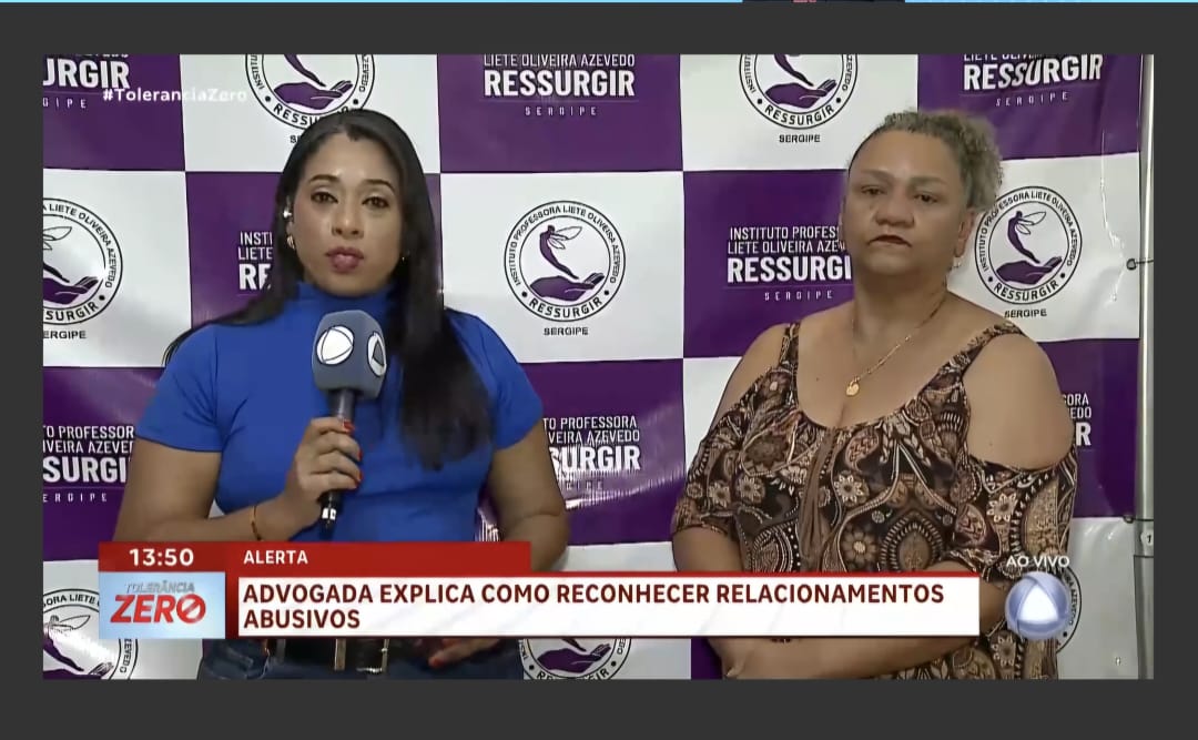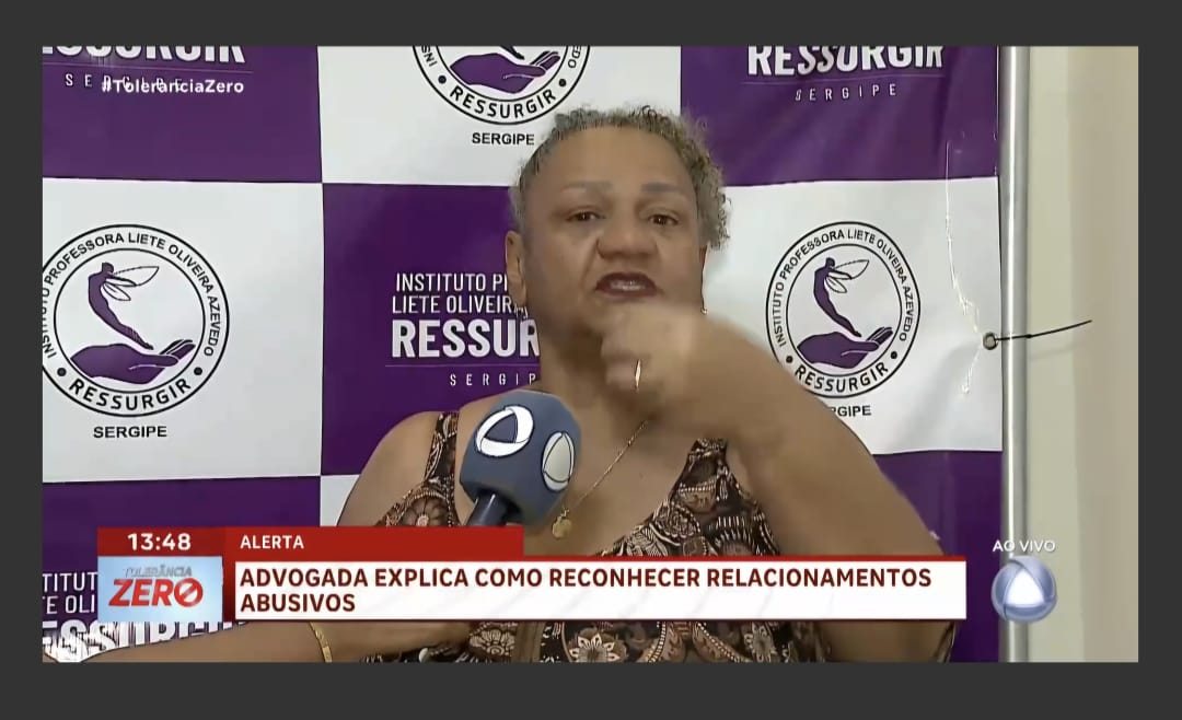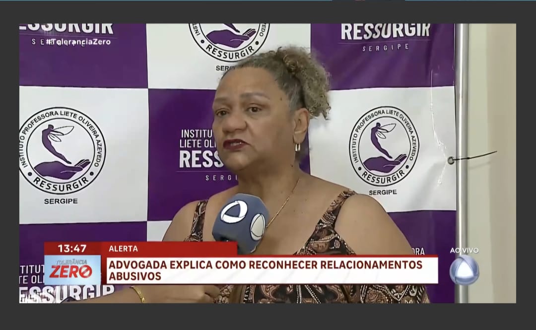 Na tarde de 08.01.2026 o Instituto RESSURGIR Sergipe, representado pela presidente, Valdilene Oliveira Martins, concedeu entrevista a repórter Carla Mesquita, para o programa Tolerância Zero, da TV Atalaia, apresentado pelo Jornalista Silvio Luiz, para explicar como identificar um relacionamento abusivo.