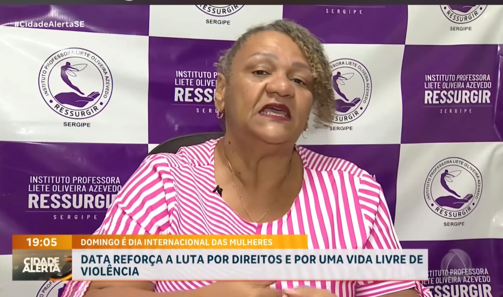 Na noite de 06.03.2026, o Instituto RESSURGIR Sergipe, representado pela sua presidente, Valdilene Oliveira Martins, concedeu entrevista para o Programa Cidade Alerta Sergipe, da TV Atalaia, apresentado pela jornalista Mariana Sena, para falar sobre o 08 de março, dia internacional da mulher, diante do índice alarmante de violência contra a mulher e feminicidios no Brasil.